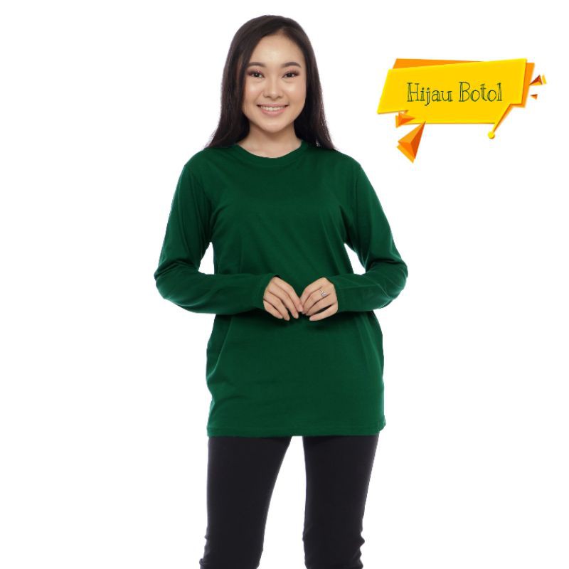 Jual Kaos Polos Cotton Combed 30s Hijau Botol O Neck Unisex Lengan Panjang Baju Wanita Indonesia Shopee Indonesia